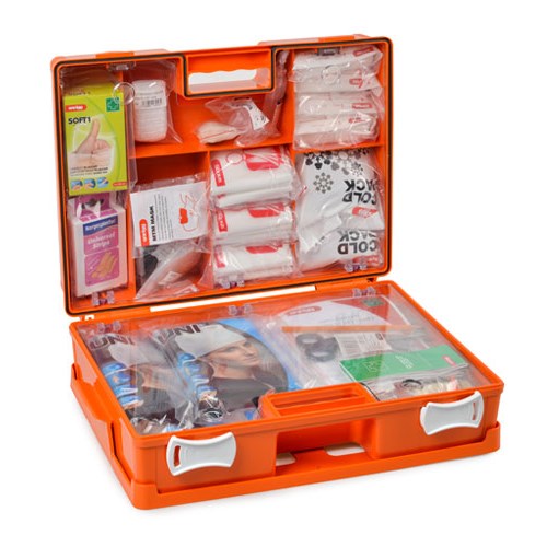 Det varierte innholdet passer for store bruksområder, og førstehjelpskofferten er beregnet til større ulykker. Pakken inneholder blant annet Uni bandasje, ElastoQuick støttebandasje, sårservietter, øyeskyll, isposer og munn til munn maske.