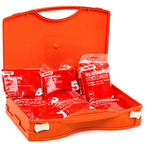 Vi kan anbefale den som førstehjelpskoffert for turbusser og som en beredskapskoffert for små bedrifter, kontor og forretninger.
