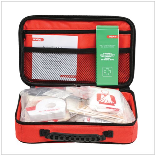 Active First Aid Auto førstehjelpsveske passer godt til bilen, og ellers der uforutsette skader kan oppstå. Vesken inneholder utstyr som er tilpasset små og store skader.