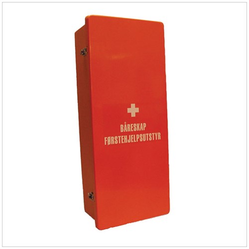 Glassfiberskapet er utarbeidet med tanke på å kunne tåle fuktig støvfylt miljø. Vi kan nevne Nordsjøen, ved tunnelarbeid, i gruver og støperier. Skapet er vann- og støvtett, rustsikkert og har en utrolig slagfasthet. Skapet er utstyrt med justerbare, rustfrie låseanordninger og innlagte gummipakninger i dør. Dette skapet inneholder sammenleggbar sykebåre, 2 stk. ulltepper og førstehjelpsskrin med utstyr for små og store skader.