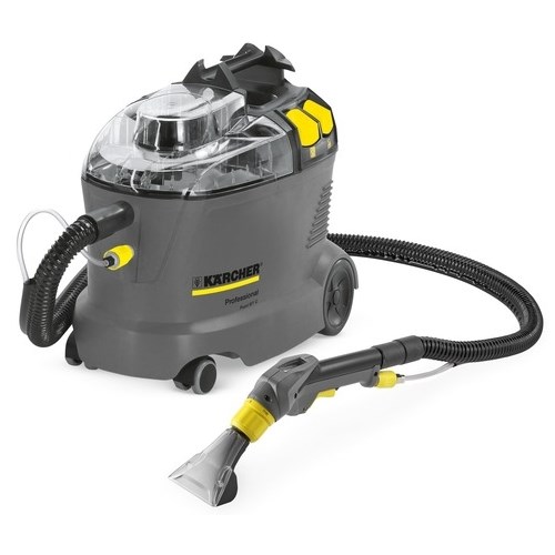 Kompakt sprayekstraksjonsmaskin til rengjøring av små og mellomstore flater. Ypperlig for rengjøring av tepper og møbler i tekstil. Maskinen etterlater svært liten fuktighet etter rengjøring, slik at tepper og møbler raskt kan benyttes igjen. 2 små hjul foran og 2 store bak forenkler arbeidet da maskinen følger enkelt etter deg. Lav vekt gjør den lett å frakte. Strømledningen kan lagres på en utfoldbar krok. Oppbevaringsmulighet for håndmunnstykke.