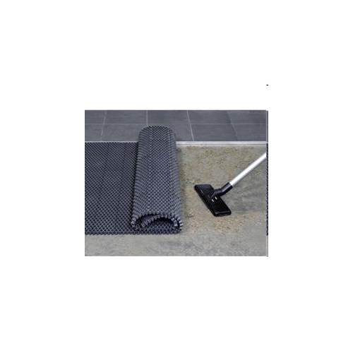 Matten rengjøres enkelt med kosting eller spyling med vann. Undersiden