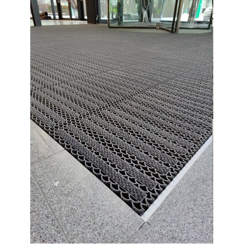 Jaguar Carpet er en modulbasert skrap/tørkematte som kan bygges i kombinasjon med Jaguar Original matten. Dette gjør Jaguarmatten til en effektiv kombinasjonsmatte i stedet for en ren avskrapningsmatte. Hvis ønskelig kan man få hele matten av kun Carpet moduler, dette øker absorberingseffekten på matten. Modulene er i format 100 x 400mm. Jaguar Carpet er rullbar som Jaguar Original og trenger ikke løftes ut av mattebrønn for rengjøring. Matten rulles opp en gang pr. uke for rengjøring av brønn, og støvsuges daglig ifm. øvrig renhold. Vi har mange løsninger for matter og gulvmiljø, og tilbyr spesialleveranser utover det du finner i nettbutikken. Kontakt kundeservice for mer informasjon og veiledning.