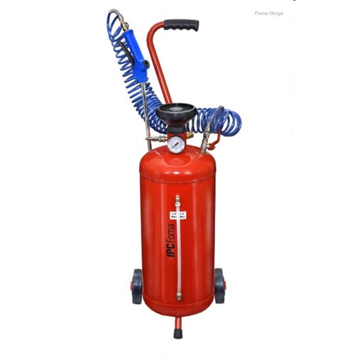 Spraykanne med 24 liters tank i lakkert stål for bruk til å påføre kjemi på f.eks. kjøretøy, landbruksmaskiner, vegger, hus, o.l. Trykket i tanken kan oppnåes ved å koble til en kompressor. Den lakkerte pumpekannen er utstyrt med manometer og tankmåler for enkel kontroll av arbeidstrykket og mengden kjemi igjen i tanken. Standard utstyr er 750 mm lanse, 8 m slange og dyse.