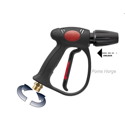 Produktinformasjon Høytrykkspistol MV925 med servoavtrekk, svivel mot slangetilkobling ogKEW hurtigkobling mot spylelanse eller skumlanse. Lansen løsnes ved å trekke koblingen til deg.
