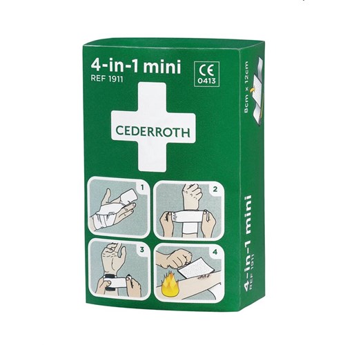 Cederroth 4-in-1 mini blodstopper er en liten, smidig og steril førstehjelpsbandasje som egner seg spesielt for skader på fingre og tær.