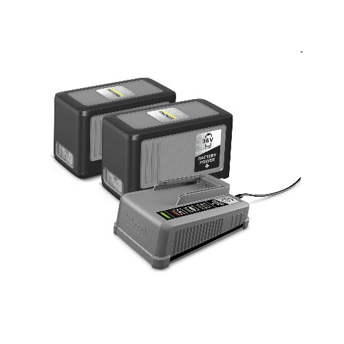 Vårt Kärcher Battery Power+ 36/75 Start Kit inkluderer to 36 V/7,5 Ah-batterier med innovativ sanntidsteknologi, som tillater uavbrutt arbeid med alle Kärcher 36 V Battery Power og Battery Power+ batteriplattformer. Settet kommer med en kraftig hurtiglader med lang levetid, som sørger for dette. Mens det andre batteriet er i bruk, kan ett av batteriene lades.