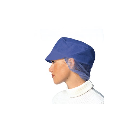 En populær non-woven skyggelue med et elastisk hårnett som dekker håret 100 %.