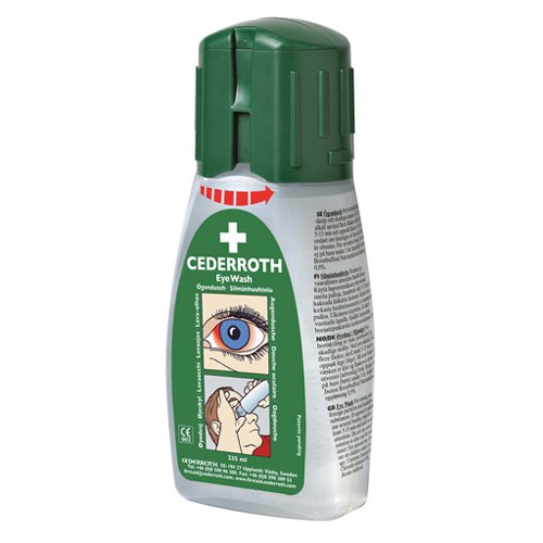 Den integrerte støvbeskytteren holder øyekoppen ren og fin. Støvbeskytteren fungerer samtidig som en åpningsanordning. Flasken åpnes automatisk når den vris ut av veggholderen og må derfor brukes med en gang. Kart a`6 stk