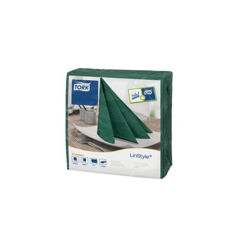 LinStyle Middagsserviett, 39x39, 1-lag, mørk grønn, 1/4 fold. Ser ut og kjennes som stoffkvalitet. Utrolig myk. Perfekt for restaura nter som ønsker å gi gjestene det lille ekstra. Godkjent for direkte matkontakt.