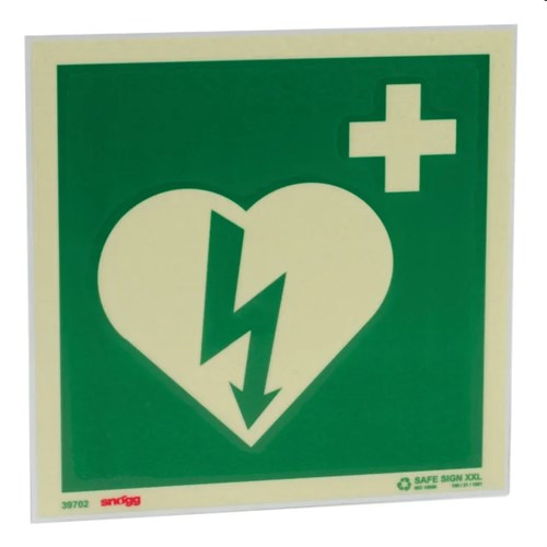 Etterlysende markeringsskilt For å synliggjøre Hjertestarter Monteres på vegg ved starteren