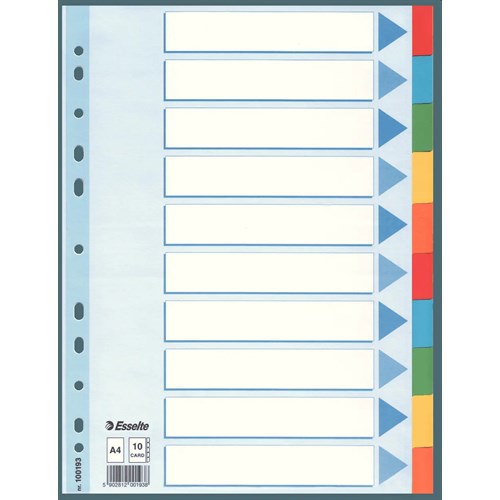 Forsterket hullkant på forsidearket 5 faner i ulike farger gir enkel sortering Universalhulling, 11 hull A4 format Solid kartong 160 g Laget av resirkulert kartong av høy kvalitet, Blå Engel-sertifisert. Kart a`10 SETT