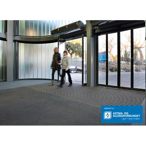 Et inngangsparti kan med enkelhet tilpasses slik at det blir en del av interiøret. Entré Miljø er konstruert for å tåle tung gangtrafikk samtidig som den fjerner fukt og mindre partikler fra skosålen uten at utseendet påvirkes.
