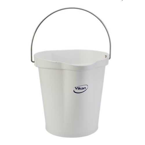 Solid bøtte med stor hellingspute, rustfritt håndtak. Har intern måling. Den hevede bunnen gjør bøylen stabil selv ved påfylling med veldig varmt vann. Kan monteres på bøttefjæring, 16200, for hurtig tørking etter bruk eller for lagring av ingredienser. Du kan også kjøpe et deksel for bøtte.