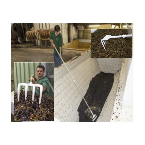 Hvitt, hygienisk rake for anvendelse i næringsmiddelindustrien, f.eks. i utarbeidelsen av frukt og grønnsaker, fisk og kjøtt.