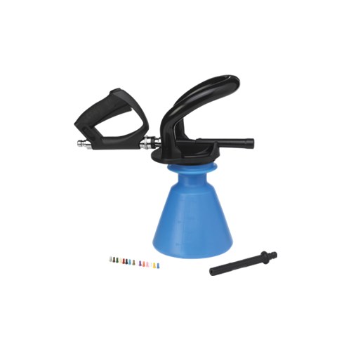 Skum Sprayer Paver skum uten aerosoler på vanlig vanntrykk. Ergonomisk design. Alltid riktig dosering over 0,4 til 10%. Identifisering av kjemikalier tilrettelagt av fargekoding av beholderen. Safeone skal utstyres med enheten for å sikre kjemisk reflux i drikkevannskilder og godkjent i henhold til EN 1717 - stoffet klasse 3. Monteres direkte til kranen.