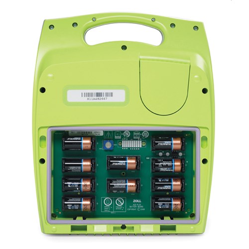 Zoll AED Plus hjertestarter bruker 10 stk. lithiumbatterier 3v. Batteriene har en levetid på ca. 5 år eller 300 sjokk.