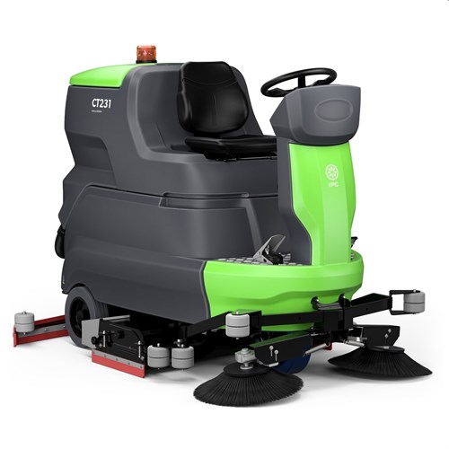 CT231 BT100R er en sittbar gulvvaskemaskin med høy effektivitet. Maskinen har stor rentvannstank på hele 220 liter og skittenvanntank på 230 liter som gir lang operasjonstid. Maskinen er selvgående, og har trinnløs hastighetsregulering på drift forover og bakover.Sweep børstene i front gjør det lettere å rengjøre på trange steder. På CT231 BT100R er trykket på skurebørstene fast innstilt i de 3 programmene, men dette kan regulerers i programvaren. Ettersyn av batterier, filtre og slanger er svært enkel, fordi hele karosseriet kan vippes bakover. Karosseriet er i slagfast polypropylenplast. Maskinen har som standard 3 stk. vaskeprogram: 1 – for rengjøring av glatte gulv som ikke er altfor skitne. 2 – for rengjøring av glatte gulv som er merkbart skitne. 3 – for svært skitne og grove betong gulv og lignende. Under kjøring i de overnevnte programmer så kan vannmengden trinnløst reguleres. Børster, sugemotor og pålegging av vann/vaskemiddel stopper automatisk når maskinen stopper. Dette gjør maskinen meget enkel i bruk.