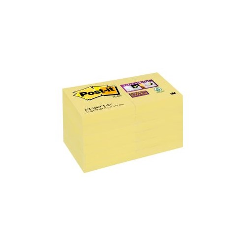 Originalen Post-it med SuperSticky klebestoff som kan festes så og si hvor som helst og sitter der! Pakke med 12 blokker og 90 ark pr blokk i format 76x76mm