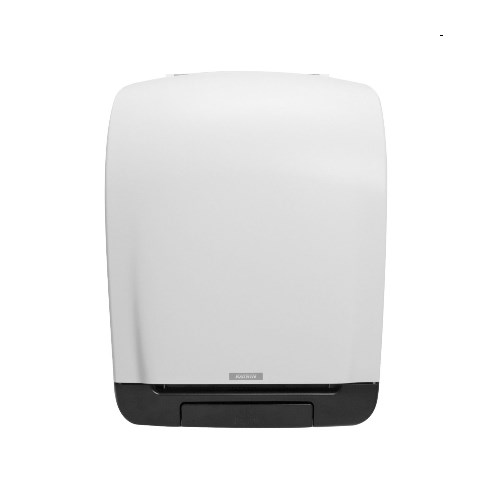 Bureau Veritas godkjent dispenser med universell utforming. Kontrollert forbruk, minimal trekkmotstand og høy kapasitet: 435–695 ark per rull avhengig av kvalitet. Hele rullen blir alltid brukt opp. Nesten tomme ruller faller automatisk ned i restrullposisjonen når rullen har en diameter på ca. 7,5cm. Hvis papiret ikke er synlig, kan man bruke den praktiske trykkflaten til å mate ut nytt papir. De gjennomsiktige sidepanelene gjør det enkelt å kontrollere papirnivået. Transparent bakstykke for enklere montering. Låsen kan brukes med eller uten nøkkel.