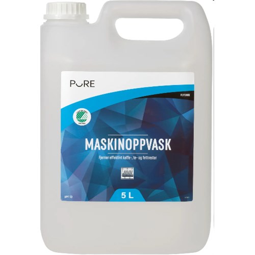 Flytende maskinoppvask Svanemerket Alkalisk Fjerner effektivt rester fra kaffe, te, leppestiftproteiner, fett og rester. Passer til bruk på porselen og glass uten dekorasjoner og metallbestikk. Ikke for aluminium.