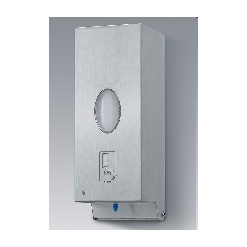 Næringsmiddel godkjent automatiske såpe- / desinfeksjonsdispenseren SDS-A leveres komplett i rustfritt materiale for veggmontering, og er batteridrevet. Leveres med 900ml beholder for oppfylling fra feks 5L kanne, noe som bidrar til mindre emballasjebruk. Kan monteres på vegg eller eget gulvstativ. Batteri: 3 x 1,5V batterier for opptil 10 000 aktiveringer.