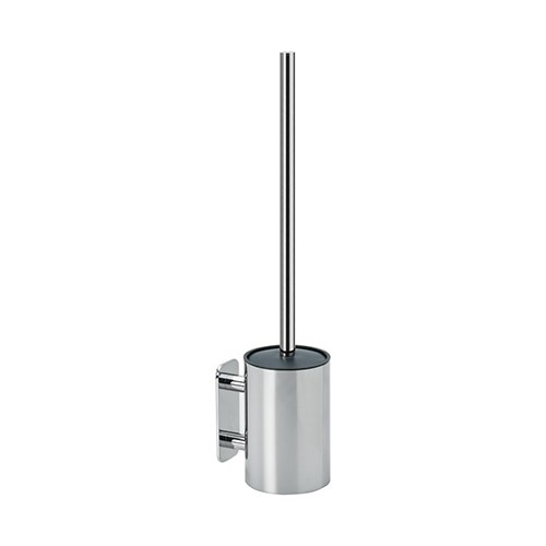Toalettbørste med kopp i rustfri design. Innvendig beholder kan tas ut. Børste i sort nylon bust (refill kan kjøpes separat). Det medfølger 3M teip og skruer for oppheng på vegg.