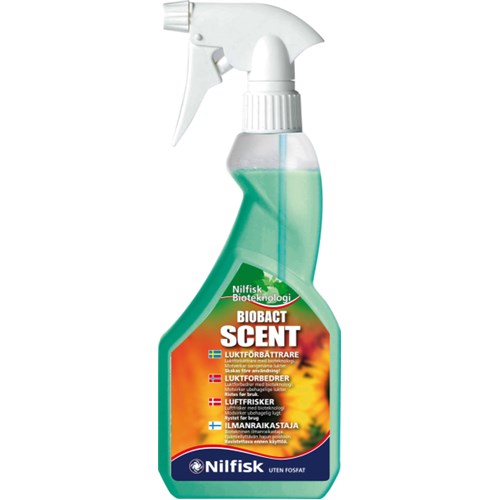 Nilfisk Biobact Scent bryter effektivt ned de organiske substansene som er hovedårsaken til et illeluktende miljø. Substanser som urin og matrester omvandles til vann og karbondioksid, samtidig som vond lukt erstattes av en frisk duft i det aktuelle rommet